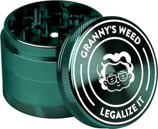 Granny‘s Premium Aluminium Grinder | messerscharfes Mahlwerk | 4-teilig | inkl. Pollenschieber | Kräutermühle